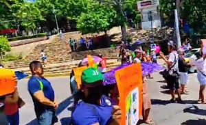 Acapulco, Gro., a 24 de agosto de 2023.- Familiares y amigas de María “N”, menor de 12 años de edad, desaparecida en Playa Condesa el pasado 18 del presente mes, bloquean la avenida Cuauhtémoc, a la altura del ayuntamiento de Acapulco, para exigir a la Fiscalía General del Estado (FGE) les informe sobre el caso de la menor desaparecida.