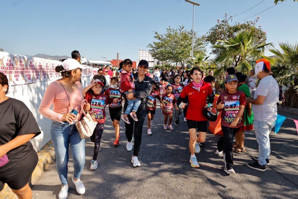 La presidenta del patronato DIF Guerrero, Liz Adriana Salgado Pineda, encabezó los ejercicios de preparación para la carrera con las familias y niños para compartir la felicidad y emoción del festejo para la niñez.