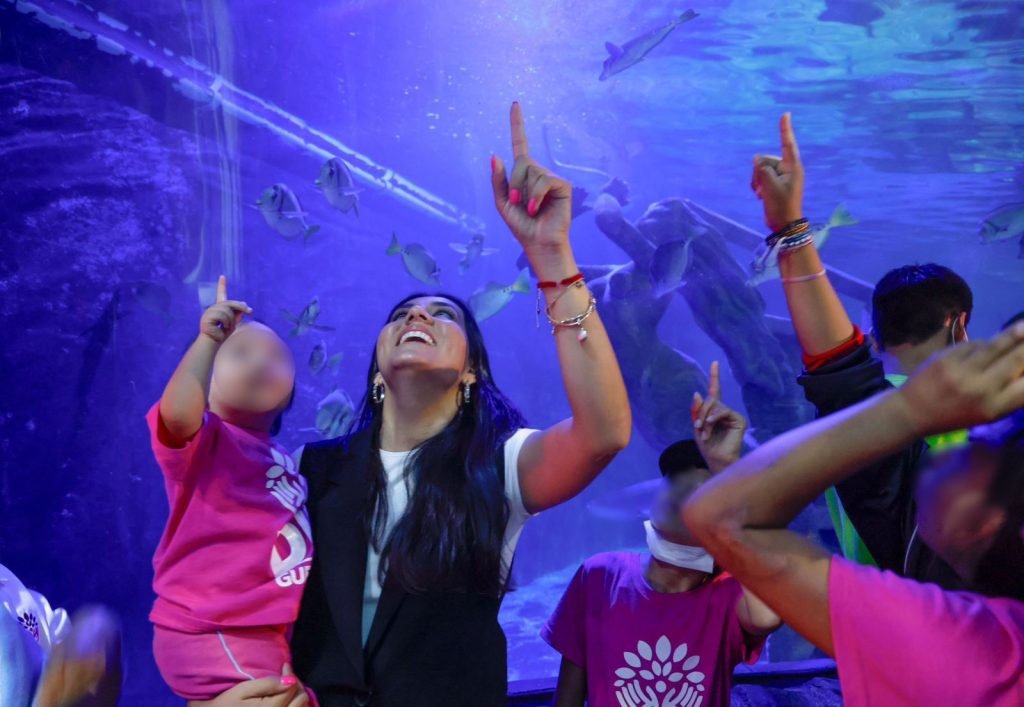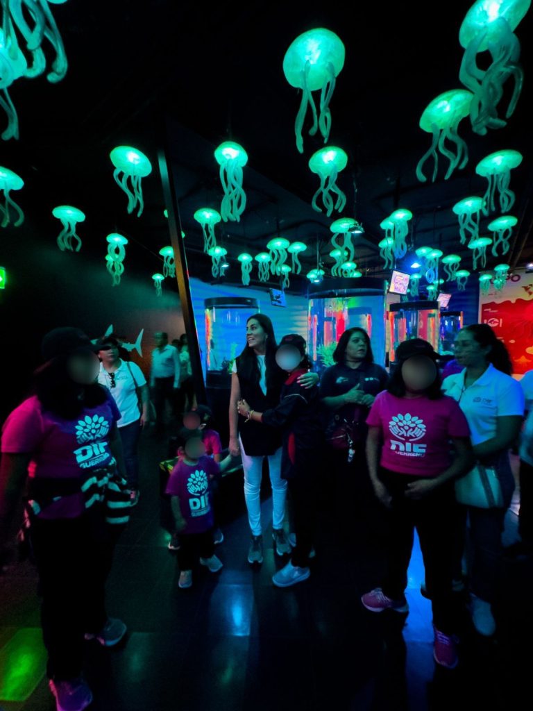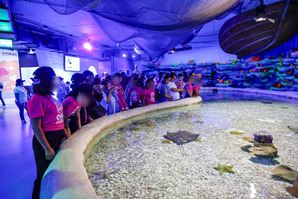 Ahí los residentes de la Casa Hogar acompañados por la presidenta del DIF Guerrero, Liz Salgado Pineda, tuvieron visitas guiadas por el lugar donde se adentraron al mundo marino de las más de 350 especies entre peces, arrecifes, rayas, tiburones, medusas y pingüinos que se encuentran en el parque acuático.