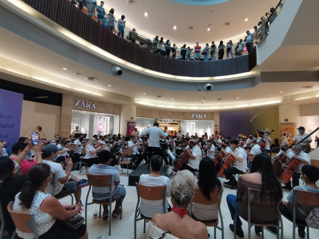 Acapulco, Gro., 11 de abril de 2022.- Al iniciar el periodo vacacional de Semana Santa y con el objetivo de acercar el arte y la cultura a los turistas que disfrutan su estancia en el puerto de Acapulco, la Orquesta Filarmónica de Acapulco (OFA) en coordinación con la Secretaría de Cultura Guerrero, realizaron este fin de semana un Concierto Especial con temas de películas en el Centro Comercial Galerías Diana, ubicado en la zona dorada de este destino de playa.