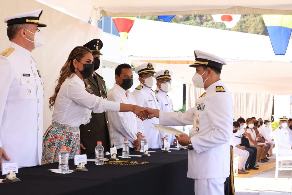 En tanto que el comandante de la Octava Región naval, Julio César Pescina Ávila, leyó el mensaje del Secretario de Marina, José Rafael Ojeda Durán, en donde refrendaron su compromiso para dar el máximo esfuerzo en pro de la soberanía nacional y en favor de las familias mexicanas. “Refrendamos nuestra institucionalidad, sentido de legalidad y una suprema lealtad que nos distingue como marinos navales. Una lealtad a toda prueba que se sustenta en un inigualable amor por México”, dijo.