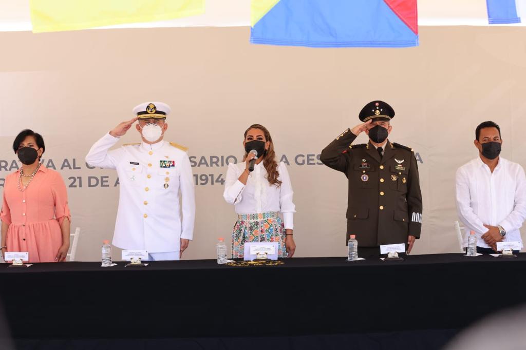 La gobernadora hizo una remembranza de la lucha que se vivió en aquellos años, en donde los mexicanos defendieron al país de la vulnerabilidad ante el interés imperialista extranjero. A su vez, honró la memora del cadete Guerrerense, José Azueta Abad, quien murió defendiendo a la patria.
