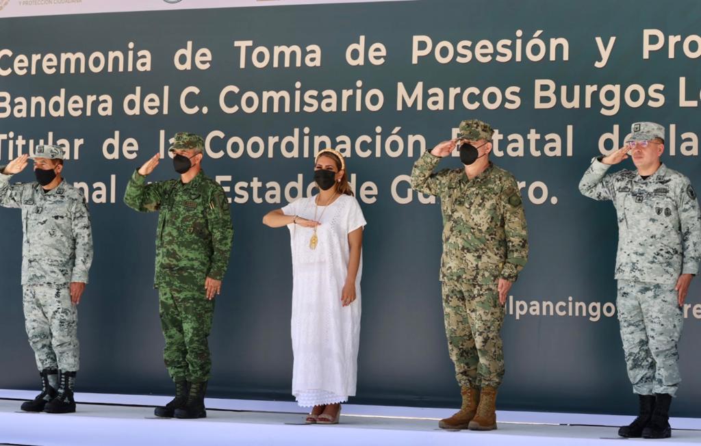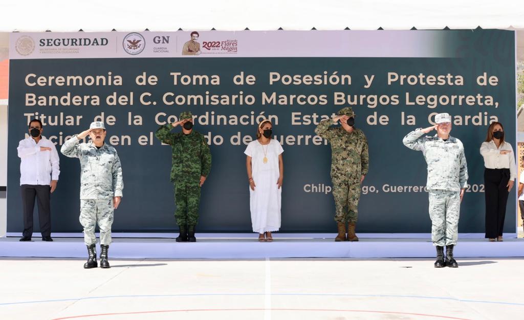 Bajo una orden extraordinaria, con los respectivos honores a la Bandera, el Comisario General, Arturo Sánchez García, integrante de la Coordinación Operativa Interinstitucional por parte de la Secretaría de la Defensa Nacional, tomó protesta y dio posesión al Comisario Marcos Burgos Legorreta como nuevo Coordinador de la Guardia Nacional en Guerrero.