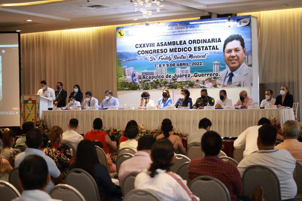 Acapulco, Guerrero., 08 de abril de 2022.- Durante la inauguración de la 128 Asamblea Extraordinaria del Congreso Médico Estatal, la gobernadora Evelyn Salgado Pineda expresó su reconocimiento al personal del sector Salud por su compromiso, vocación, así como la labor que realizan durante el desafío que ha implicado la atención a la pandemia de Covid-19.