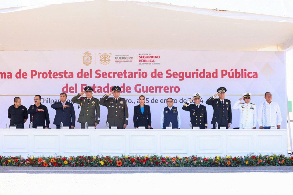 Chilpancingo, Gro., 25 de enero del 2024.- Con el respaldo del Presidente Andrés Manuel López Obrador y del Gabinete de Seguridad Federal, la gobernadora Evelyn Salgado Pineda tomó protesta al General Rolando Solano Rivera como nuevo Secretario de Seguridad Pública, con el objetivo de redoblar los esfuerzos, profundizando las acciones en perfecta coordinación con la implementación de tecnología e inteligencia, privilegiando la atención a las causas que originan la violencia, para conquistar la paz en Guerrero.