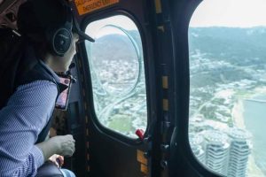 Acapulco, Gro., 27 de octubre del 2023. – La gobernadora Evelyn Salgado Pineda realizó un sobrevuelo de la zona de desastre en Acapulco, junto a la Secretaria de Gobernación, Luisa María Alcalde, el secretario de la Defensa Nacional, Luis Cresencio Sandoval y la secretaria de Seguridad Pública y Protección Ciudadana, Rosa Icela Rodríguez, para intensificar los trabajos de atención a damnificados.