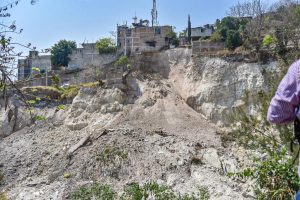 Chilpancingo, Gro., 6 de mayo de 2023.- En atención a las familias y habitantes por el desgajamiento del cerro de la colonia Ampliación Primero de Mayo de la capital, el secretario general de Gobierno, Ludwig Marcial Reynoso Núñez asistió junto a la presidenta municipal de Chilpancingo, Norma Otilia Hernández Martínez a realizar un recorrido con personal de la Secretaría de Gestión Integral de Riesgos y Protección Civil a fin de evaluar la situación y daños ocasionados en la zona.