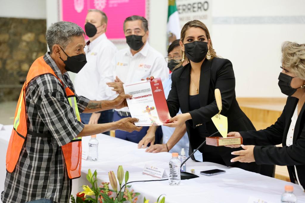 Evelyn Salgado, acompañada de la secretaria de Desarrollo Urbano, Obras Públicas y Ordenamiento Territorial, Irene Jiménez Montiel y el Director General de CAPASEG, Facundo Gastelum Félix, entregó reconocimientos por el trabajo y esfuerzo a 30 personas, entre albañiles, maestros de obra, carpinteros, electricistas, plomeros y electromecánicos, así como transportistas, con motivo del Día de la Santa Cruz.