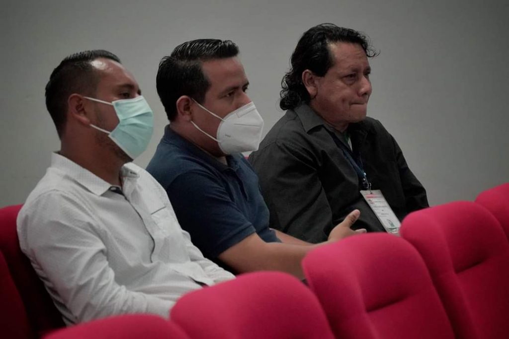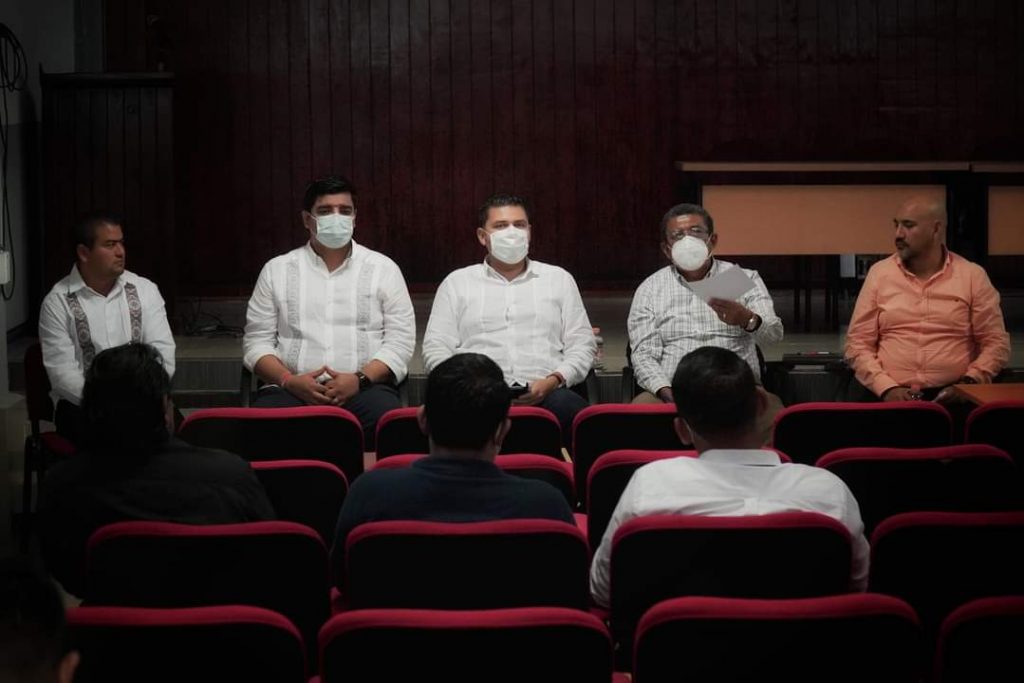 Chilpancingo, Gro. Lunes 5 de septiembre, 2021.- El rector de la Universidad Autónoma de Guerrero, José Alfredo Romero Olea junto al secretario general de la UAGro, Armando Guzmán Zavala; el director de Administración Escolar, Alejandro Bueno Acuña y el director general de Atención a Estudiantes, José Guillermo Girón Catalán cumplieron con el compromiso de recibir y atender a los líderes del movimiento del Frente por la Educación, la Democracia y la Institucionalidad Guerrerense (FREG).
