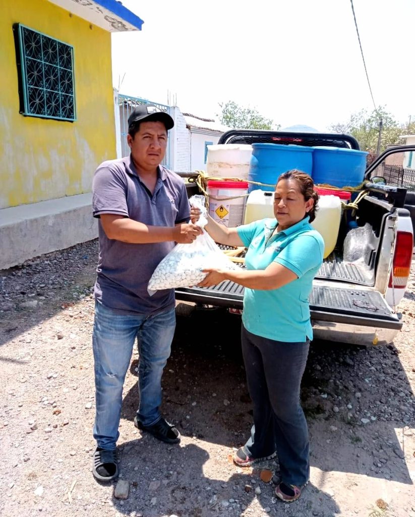 Chilpancingo, Gro., 21 de mayo 2023. La Comisión de Agua Potable, Alcantarillado y Saneamiento del Estado de Guerrero (CAPASEG) dotó de insumos para la cloración del agua en el municipio de Huitzuco, beneficiando a 11 localidades rurales.