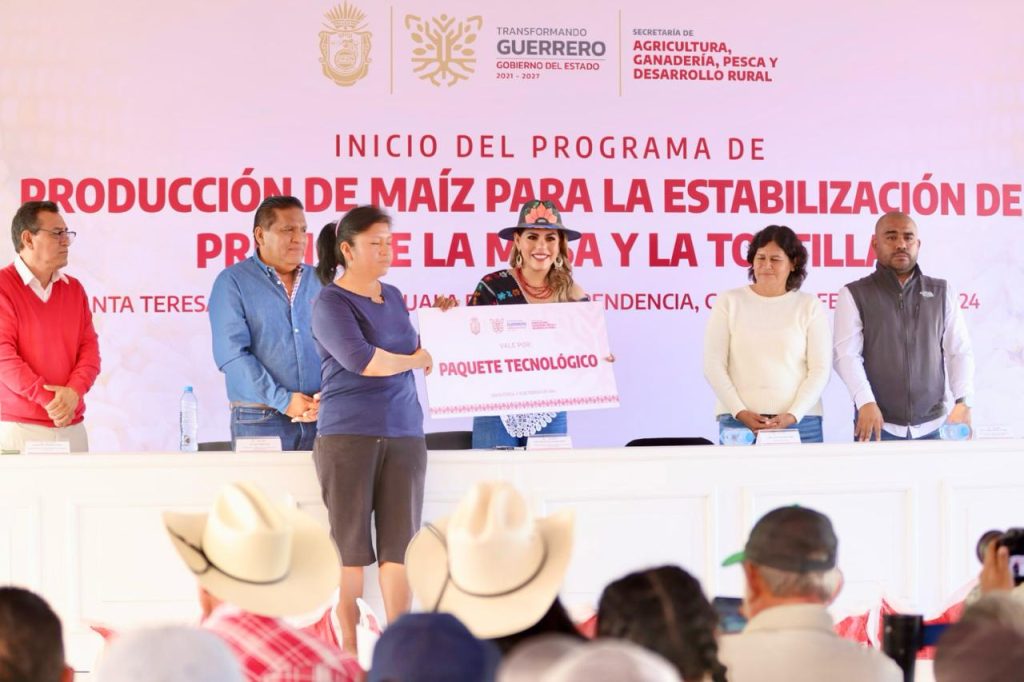 Santa Teresa, Mpio., de Iguala, Gro., 16 de febrero de 2024.- En apoyo a los productores campesinos y en beneficio de la economía de las familias guerrerenses, con una inversión superior a los 24 millones de pesos, la gobernadora Evelyn Salgado Pineda, puso en operación el Programa de Producción de Maíz para la Estabilización del Precio de la Masa y la Tortilla en la zona Norte.