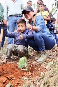 Con el compromiso de seguir impulsando el cuidado del medio ambiente y seguir realizando plantaciones masivas para contrarrestar el cambio climático, la gobernadora realizó en Llanos de Tepoxtepec la reforestación de pinos Ayacahuite, Devoniana, Tejocote y Maguey en una zona deforestada por incendios, además, anunció que el titular de SAGADEGRO, Alejandro Zepeda Castorena, donará para esta zona árboles frutales como pera, aguacate y durazno.