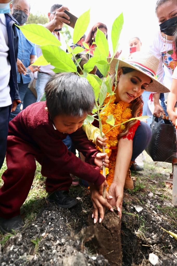 Eduardo Neri, Gro., 08 de junio del 2022. – En el marco de la Semana Internacional del Medio Ambiente, la gobernadora Evelyn Salgado Pineda, encabezó una actividad de reforestación con estudiantes y habitantes del ejido del Palmar en la localidad de Jalapa, de este municipio, donde se plantaron 500 especies de árboles, además de entregar 7 mil 500 plantas de diversas especies maderables y frutales, para ser sembradas en zonas boscosas de la entidad, como una de las acciones alineadas a los objetivos de la Agenda 20-30 para el Desarrollo Sostenible.