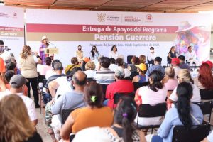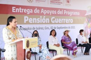 Acapulco, Gro., 02 de septiembre de 2022.- “Tenemos la convicción de garantizarles a nuestros adultos mayores, un envejecimiento digno, respetando sus derechos. Ustedes son nuestro origen, nuestra fortaleza,” expresó la gobernadora, Evelyn Salgado Pineda durante la entrega del Programa Pensión Guerrero, mediante el cual se apoya a los adultos mayores de 63 y 64 años con 11 meses, que no entran en los esquemas institucionales del gobierno de México, lo que representa una inversión directa anual de 24 millones de pesos para el año 2022.