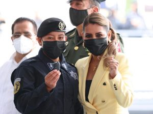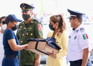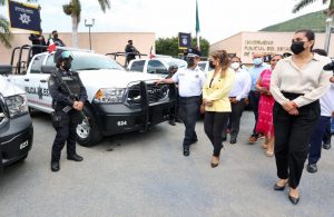 En el evento, la gobernadora, también entregó cinco patrullas nuevas y 92 equipos de radio comunicación al Instituto de la Policía Auxiliar del Estado, que se adquirieron con recursos propios de esta administración con una inversión de 2.8 millones de pesos.
