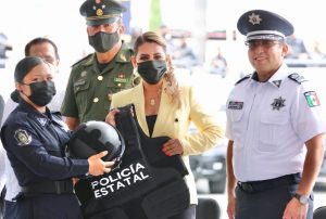 Por su parte, el secretario de Seguridad Pública, Evelio Méndez Gómez, destacó que esta inversión superior a los 200 millones de pesos, es una muestra de que la seguridad es una de las prioridad para la gobernadora y que estas acciones dignifican a la Policía Estatal y a los elementos de la Policía de Género, Grupo de Reacción Inmediata Jaguar, Grupo Centauro, Fuerzas Especiales, Tránsito Estatal y de la Policía Auxiliar.