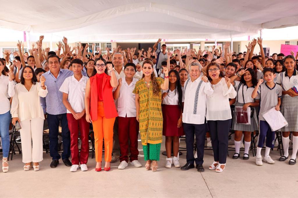 En las instalaciones de la Secundaria Federal No. 1 Puerto Acapulco, la mandataria estatal reafirmó el compromiso de su administración con la educación y con el bienestar de Guerrero. De manera particular se refirió a lo que se vivió en Acapulco y Coyuca de Benítez tras el paso del huracán, lo que generó afectaciones en las escuelas, así como la pérdida en algunos casos de libros, útiles y uniformes escolares.