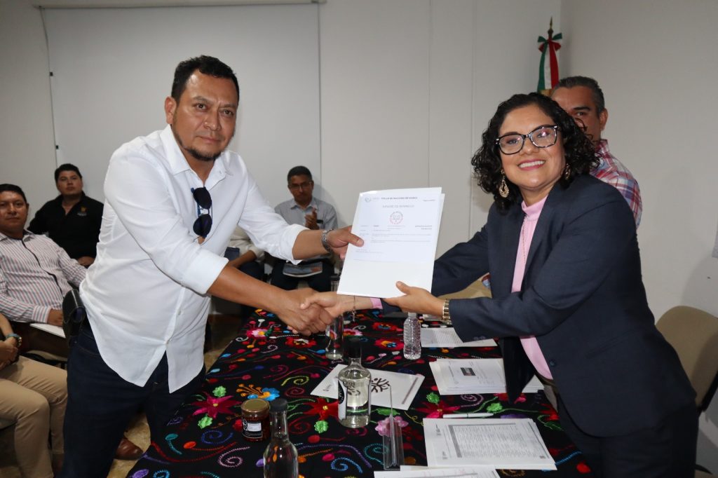 La entrega se realizó en la sala de juntas de la dependencia, donde Ramírez Vega expresó que en la administración de la gobernadora Evelyn Salgado Pineda se están impulsando acciones y programas para la protección de productos y servicios, además de fortalecer la competitividad en los procesos productivos de las MiPYMES de Guerrero.