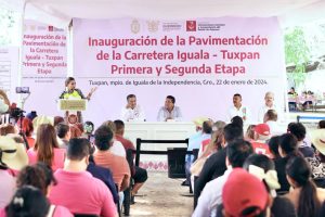 Iguala de la Independencia Gro., 22 de enero del 2024. – La gobernadora Evelyn Salgado Pineda cumplió su compromiso de seguir impulsando el desarrollo del municipio de Iguala al anunciar y entregar diversas obras como la primera y segunda etapa de la rehabilitación del camino a la Laguna de Tuxpan y la pavimentación del circuito vial en la colonia Abrazo de Acatempan, con una inversión total superior a los 30 millones de pesos.