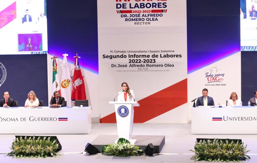 *La gobernadora asistió al 2do Informe de Labores del rector José Alfredo Romero Olea al frente de la UAGro