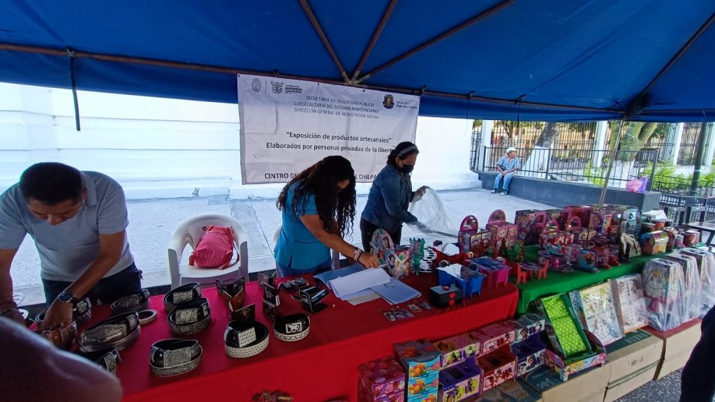 Como parte del Convenio Intersecretarial del Sistema Penitenciario, suscrito entre la Secretaría de Seguridad Pública Estatal y el municipio de Chilpancingo, se instaló desde las 10 de la mañana, frente a la parroquia de la Asunción, un puesto con diversas artesanías como cinturones de pita e hilo de plata, carteras de piel con bordado de pita o hilo de plata, juguetes, lámparas, sillas y bolsas confeccionados con madera y plástico, además de balones de fútbol, entre otras artesanías.