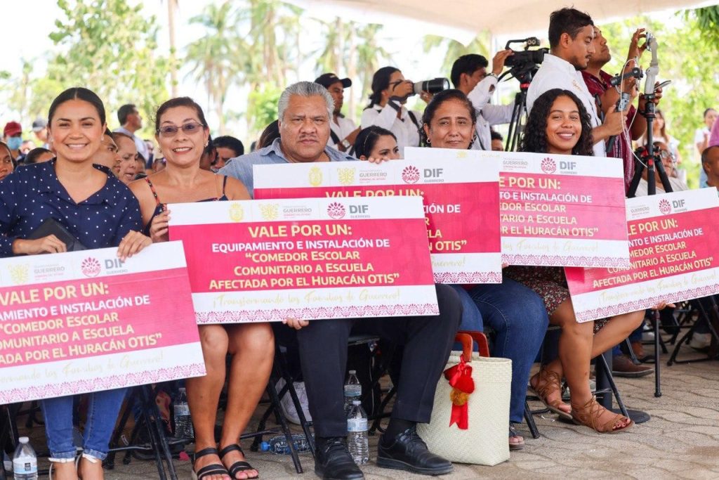 Acapulco, Gro., 15 de febrero de 2024.- Con el propósito de fortalecer el programa de atención a niñas y niños que cursan educación básica, la gobernadora Evelyn Salgado Pineda en coordinación con el DIF Guerrero, entregó equipo para la instalación de Comedores Escolares Comunitarios en 50 escuelas que resultaron afectadas por el huracán Otis. En esta acción se invierten más de 3 millones de pesos, destinados a 15 planteles de Coyuca y 35 de Acapulco, lo que permitirá mejorar la alimentación y garantizar el pleno bienestar de la niñez, acompañando su desarrollo integral en esta importante etapa.