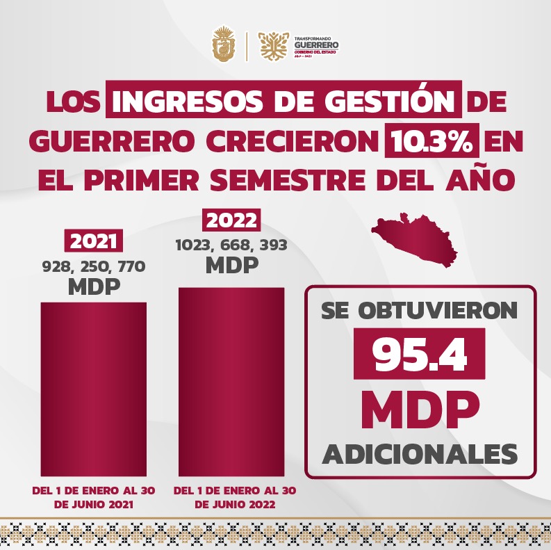 *Resultado de una política de cero corrupción logra crecer un 10.3% los ingresos y recaudación de Guerrero
