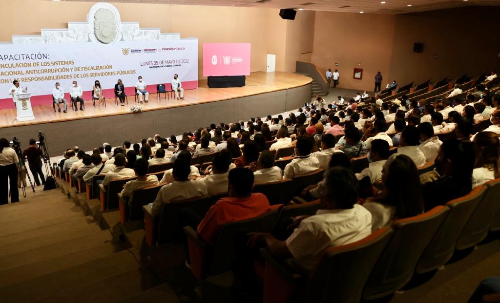 Con funcionarios federales de la Secretaría de la Función Pública en coordinación con la Secretaría de la Contraloría y Transparencia Gubernamental del Estado, se desarrolla la capacitación respecto a los Sistemas de Fiscalización Anticorrupción vinculados a las responsabilidades de los servidores públicos, donde participan los titulares de los Órganos Internos de Control y los comités de Control, asi como presidentes municipales y del Tribunal de Justicia Administrativa del Estado.