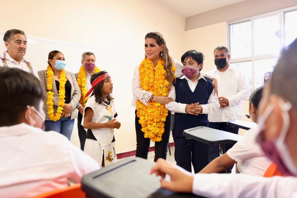 “Vamos a iniciar por nuestras comunidades indígenas, por esos pueblos que durante muchos años estuvieron en el rezago y en abandono y hoy ya no será una realidad, vamos a trabajar juntas y juntos de la mano con las autoridades educativas, con los padres de familia para cambiar la realidad de nuestras comunidades indígenas”, afirmó Evelyn Salgado.