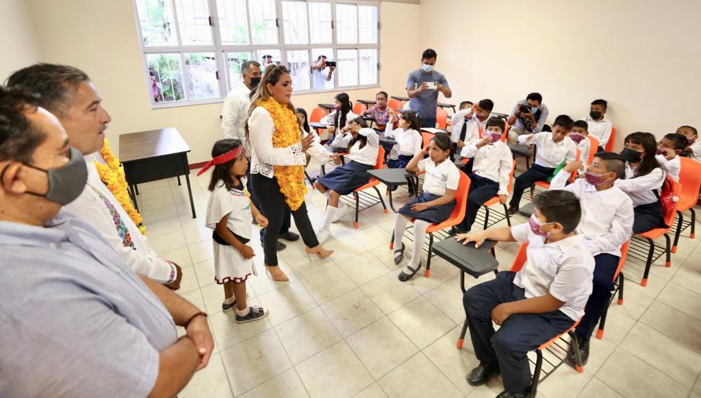 La titular del Ejecutivo estatal, dijo que su gobierno continuará cambiando el rostro de las escuelas con prioridad en las colonias para hacer realidad la justa demanda de los pueblos indígenas y comunidades interculturales, además de refrendar su compromiso con la educación en todos sus niveles.