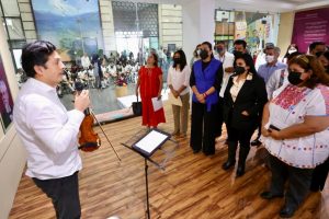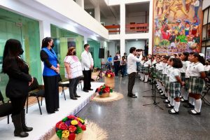 Durante el evento las autoridades cortaron el listón inaugural de esta exposición en el Palacio de Cultura en Chilpancingo, donde el Coro Infantil de la Escuela Secundaria Federal Matutina “Ejército Mexicano” de Acapulco, interpretó las estrofas del Himno Nacional Mexicano y el Himno a Guerrero.