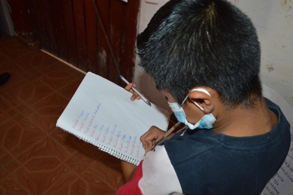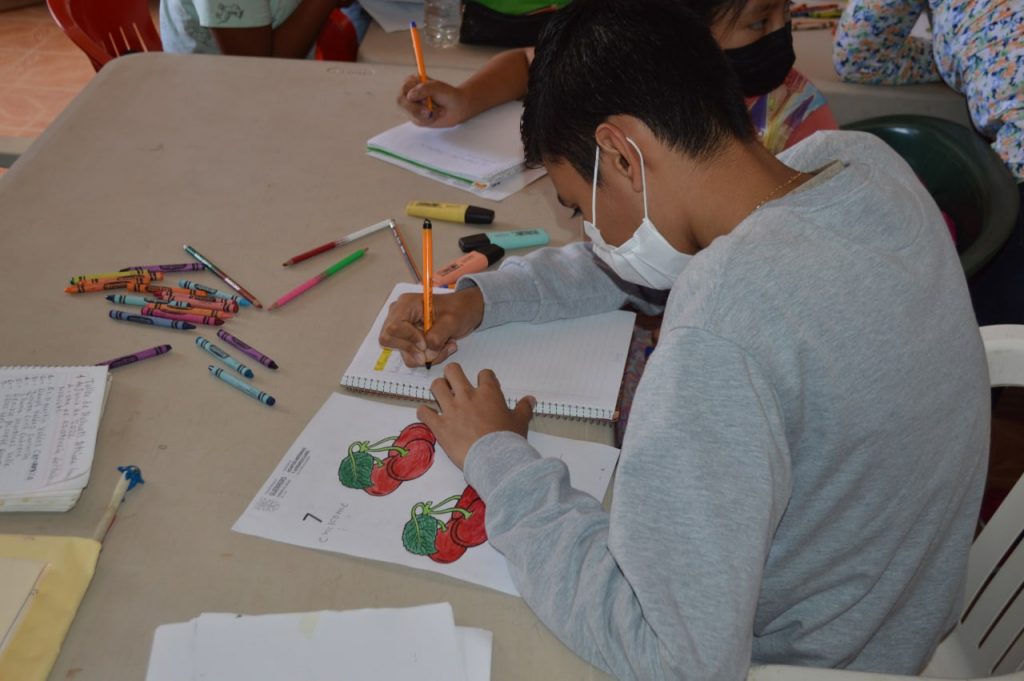 Atliaca, municipio de Tixtla, Gro., 28 de agosto de 2022.- Con el propósito de fortalecer la lengua náhuatl hablada y escrita, la Secretaría de Asuntos Indígenas y Afromexicanos (SAIA), a través de la Dirección de Promoción Cultural y Apoyo Social, lleva a cabo en esta localidad, el “Taller Lingüístico de Lengua Náhuatl”, en el que participan niñas, niños y adultos de este lugar.