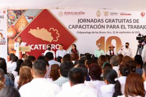 “Cuando hay una mujer que ya se capacitó en ICATEGRO y ya está trabajando, hay toda una familia que se beneficia, esto quiere decir que ICATEGRO no nada más está capacitando a una persona, está transformando a las familias”, afirmó Evelyn Salgado en su mensaje durante las jornadas gratuitas de capacitación en la capital del estado.
