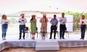 Evelyn Salgado Pineda se trasladó al municipio de Coyuca de Catalán acompañada por la secretaria de Desarrollo Urbano, Obras Públicas y Ordenamiento Territorial, Irene Jiménez Montiel y el director de CICAEG, Martín Vega González, donde entregó la rehabilitación del Campo Deportivo “Yácata”, obra que era una petición sentida de la población y de los deportistas.