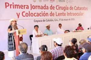 En su mensaje, la secretaria de Salud Aide Ibarez Castro, destacó que la gobernadora Evelyn Salgado Pineda ha logrado gestionar más de 10 mil apoyos a través de la Beneficencia Pública Nacional para Guerrero entre estos la jornada de cirugía de cataratas y colocación de lente intraocular a la población vulnerable.