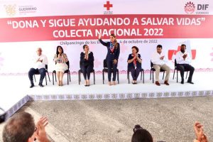 Chilpancingo, Gro., 04 de octubre del 2022. – Con el llamado a la fraternidad y a la solidaridad del pueblo de Guerrero, la gobernadora Evelyn Salgado Pineda y la Presidenta del Sistema DIF Estatal, Liz Adriana Salgado Pineda, pusieron en marcha la Colecta Nacional de la Cruz Roja Mexicana 2022, bajo el lema: “Dona y sigue ayudando a salvar vidas”, con una meta establecida para recaudar un millón de pesos en aportaciones voluntarias en Guerrero.