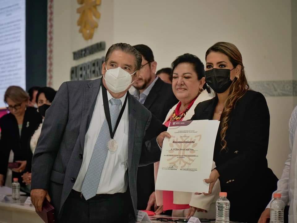 La comunidad universitaria se siente orgullosa de sus talentos UAGro, en manos de la Gobernadora, Mtra. Evelyn Salgado Pineda, el destacado catedrático de la facultad de Derecho. Dr. Víctor Manuel Arcos Vélez recibió el reconocimiento al Mérito Jurídico “Lic. Alberto Vázquez del Mercado”.