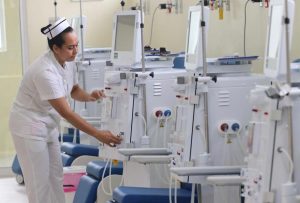 En las instalaciones del recién reconvertido Hospital IMSS Bienestar Renacimiento -antes Donato G. Alarcón-, la gobernadora, el presidente y los integrantes del Gabinete de Salud, también visitaron las instalaciones de la Primera Clínica de Hemodiálisis, en donde se invirtieron más de 56 millones de pesos. Esta nueva unidad cuenta con 21 equipos, con tres sesiones diarias, lo que les permitirá aumentar la expectativa de vida de los pacientes, hasta con quince años; actualmente atiende a 114 personas, ofreciendo en promedio 441 sesiones semanales.