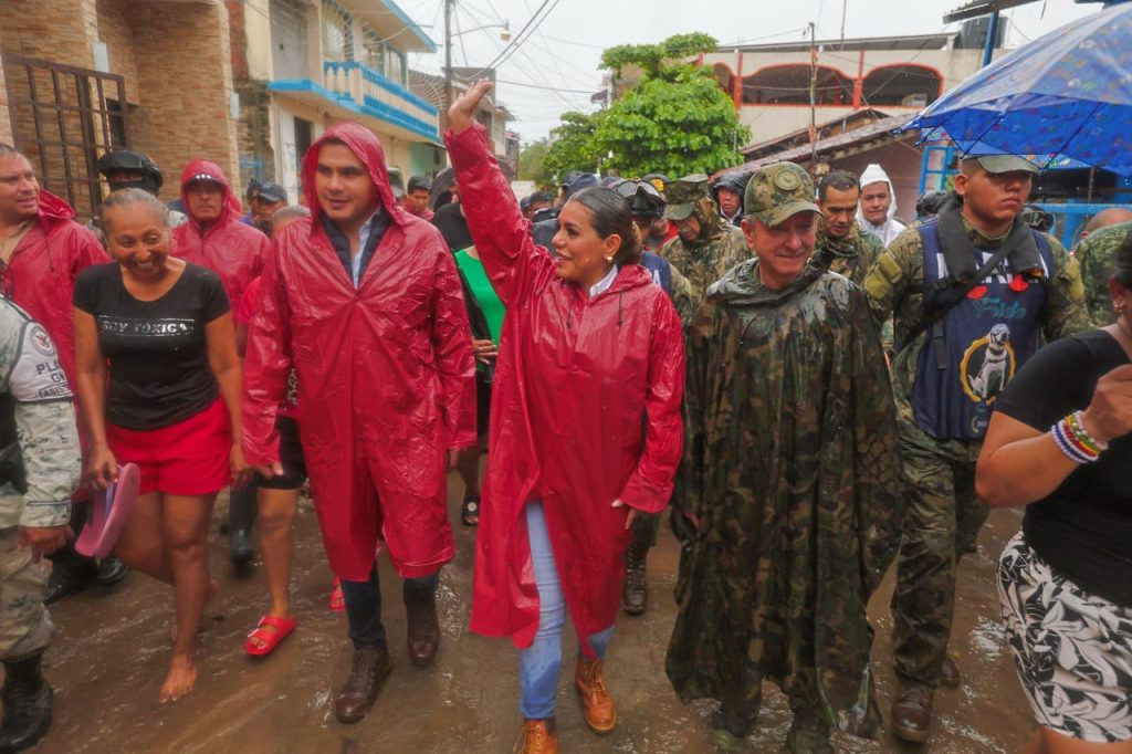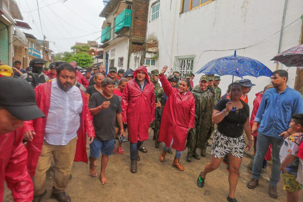 Recorren Evelyn Salgado y el secretario de Marina, Rafael Ojeda la zona afectada por lluvias generadas por “Max”