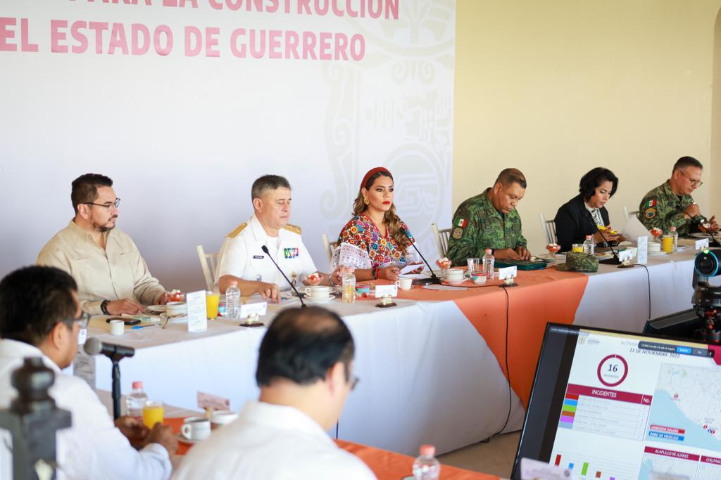 Acapulco, Gro., 23 de noviembre de 2022.- Al encabezar la sesión de trabajo de la Mesa de Coordinación para la Construcción de la Paz, la gobernadora Evelyn Salgado Pineda, destacó que Guerrero se mantiene con una tendencia a la baja en la incidencia delictiva y se ubica en la posición 25 de los 32 estados del país por delitos cometidos, alejado de los primeros lugares de mayor incidencia delictiva, lo que refleja el resultado del trabajo permanente en materia de seguridad en el estado con el apoyo permanente de las fuerzas del orden federal y estatal.