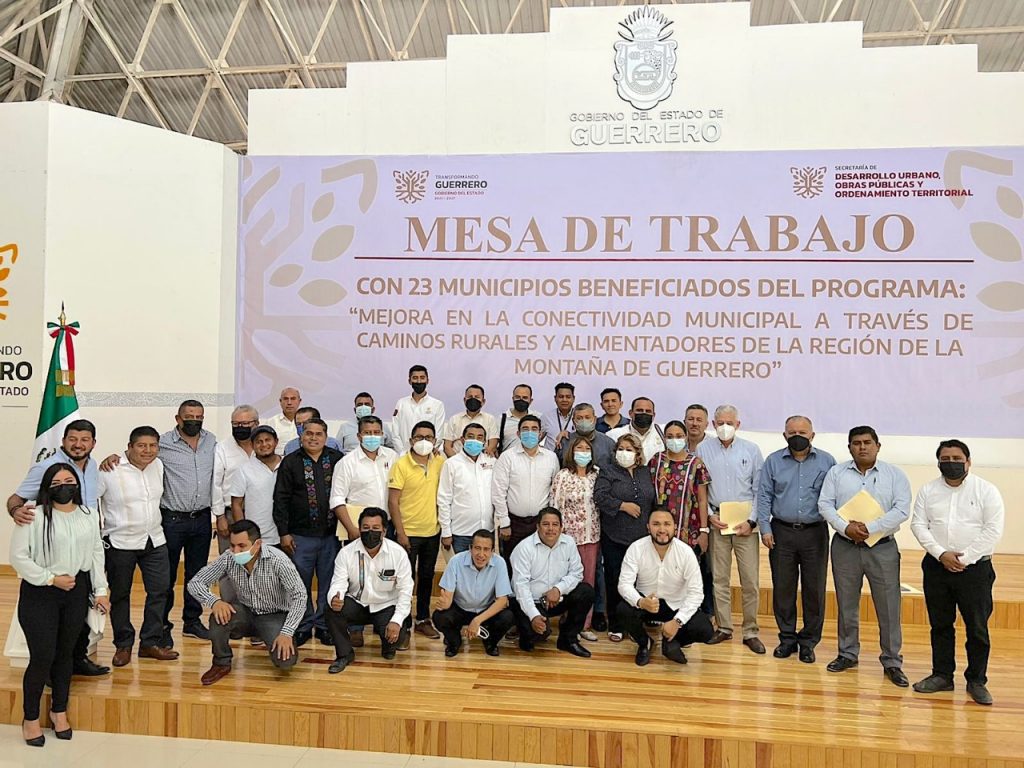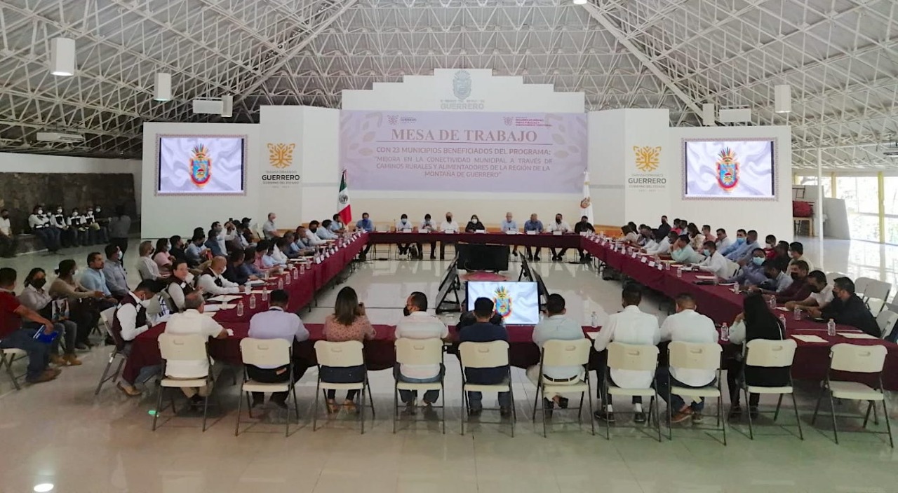 Chilpancingo, Gro., 29 de abril de 2022.- La secretaria de Desarrollo Urbano, Obras Públicas y Ordenamiento Territorial, Irene Jiménez Montiel, encabezó la mesa de trabajo de seguimiento del programa Mejora en la Conectividad Municipal a través de Caminos Rurales y Alimentadoras de la Región de la Montaña de Guerrero, a través del cual se benefician miles de habitantes de zonas de alta y muy alta marginación de 23 municipios.
