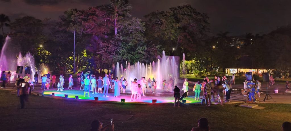 Acapulco, Gro., 01 de octubre de 2023.- Cientos de familias han hecho suyas las tardes culturales que se realizan en las fuentes danzarinas de colores del parque Papagayo, acudiendo cada fin de semana a disfrutar los espectáculos artísticos, a convivir y estrechar lazos sociales entre locales y visitantes.