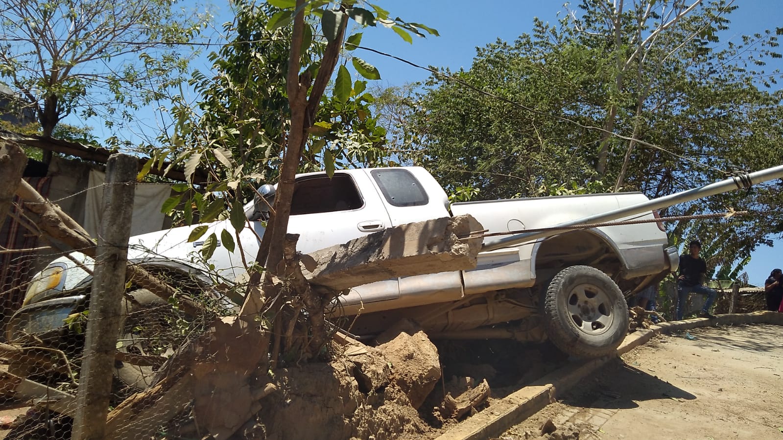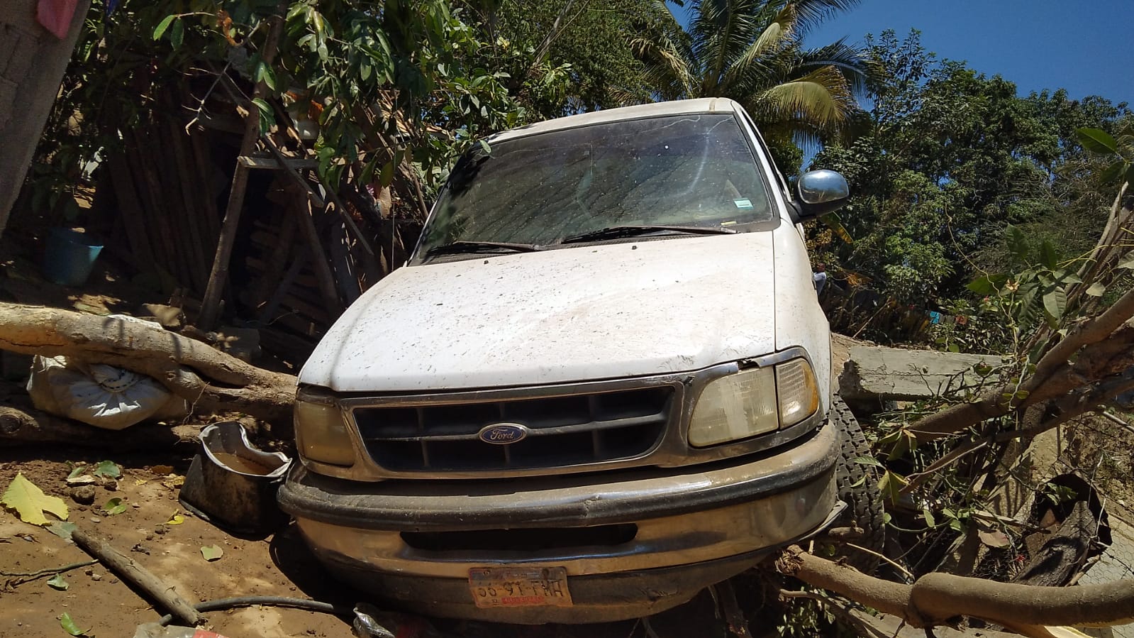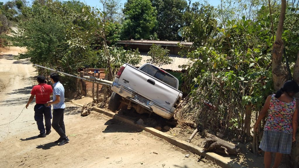 Dono que “Ducho accidente vial fue en la bajada inclinada con curva cerrada y se trata de una camioneta ford F- 150 color blanca, cabina y media, la cual se entampo contra una casa habitacion”.