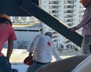 Acapulco, Gro., 13 de noviembre de 2023.- Después de las afectaciones que generó el paso del huracán “Otis”, la Secretaría de Gestión Integral de Riesgos y Protección Civil realiza dictámenes de seguridad estructural en edificios públicos y privados del puerto, con la intención de descartar cualquier riesgo de peligro para usuarios y ciudadanía en general.
