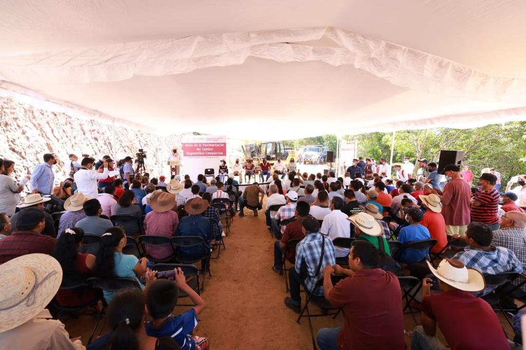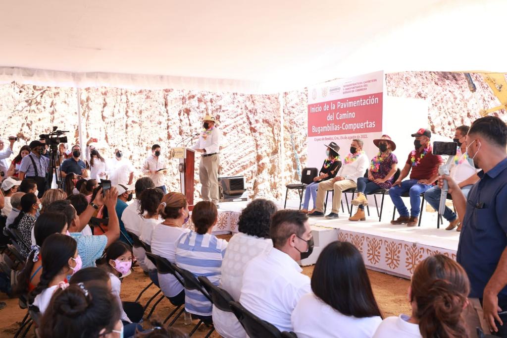 *La gobernadora dio el banderazo de inicio a la pavimentación del camino Bugambilias-Compuertas e inauguró la pavimentación del camino Platanillo-Tixtlancingo