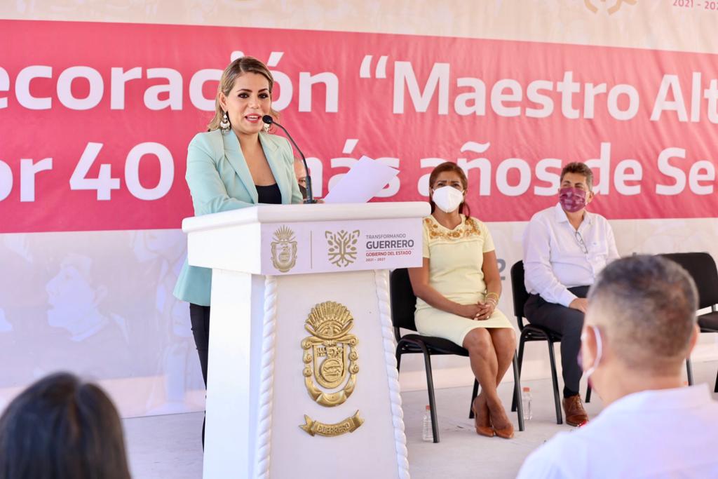 *Entrega gobernadora condecoraciones y preseas “Maestro Altamirano” a docentes con más de 40 años de servicio educativo en Guerrero