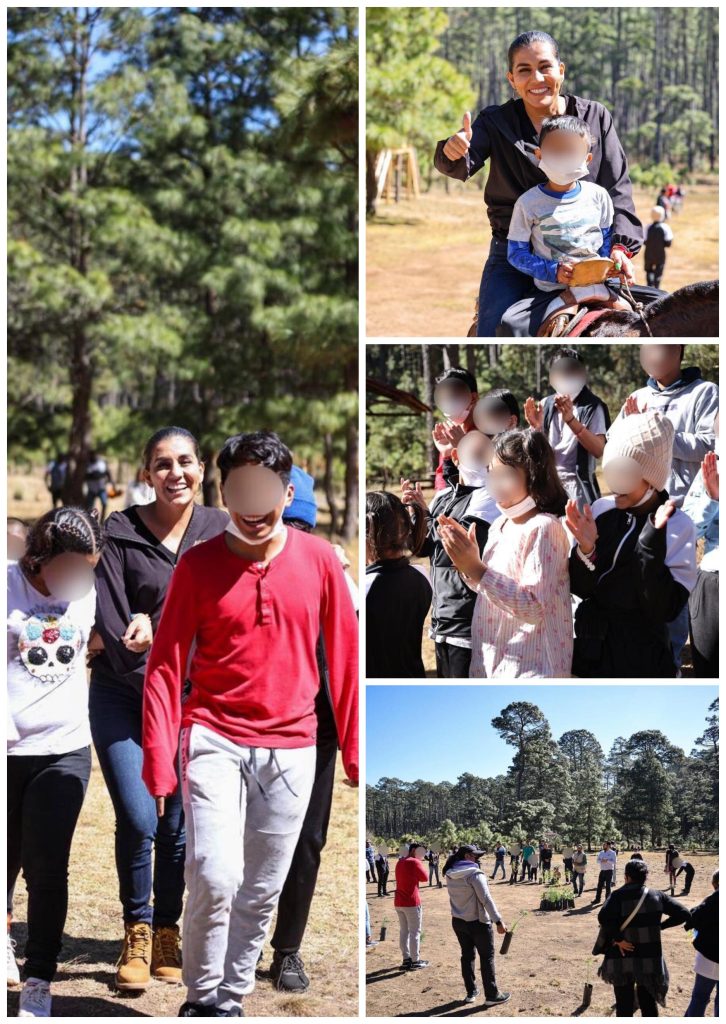 Guiados por la presidenta honoraria del DIF Guerrero, Liz Adriana Salgado Pineda, las y los menores a cargo del estado, montaron a caballo, pasearon en bicicleta, se subieron a la tirolesa y sembraron nuevos pinos, cedros y árboles frutales de la región.