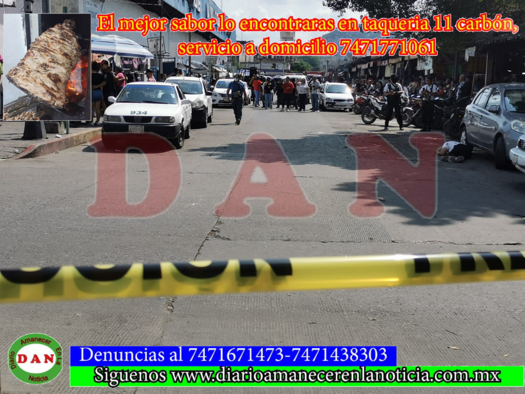 Iguala de la Independencia. Gro. 23 de octubre de 2023.- Tras un ataque armado, un taxista y una vendedora de atoles fueron asesinados a balazos, además de que otra mujer resultó herida, hechos ocurridos sobre la calle Salazar casi esquina con Hermenegildo Galeana, afuera de la terminal de autobuses Estrella Blanca, frente al mercado municipal “Adrián Castrejón”, de la colonia Centro, en Iguala de la Independencia.