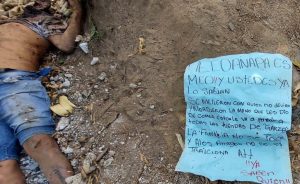 Junto a los cuerpos fue dejada una cartulina con el siguiente mensaje:
