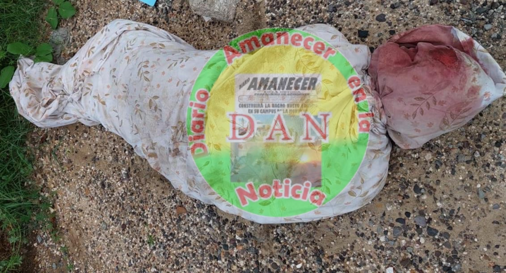 Ambas víctimas están en calidad de desconocidas, las cuales estaban envueltas en cobijas y maniatadas, además de que les fue dejada una cartulina con mensaje, cuyo contenido no fue revelado por las autoridades.